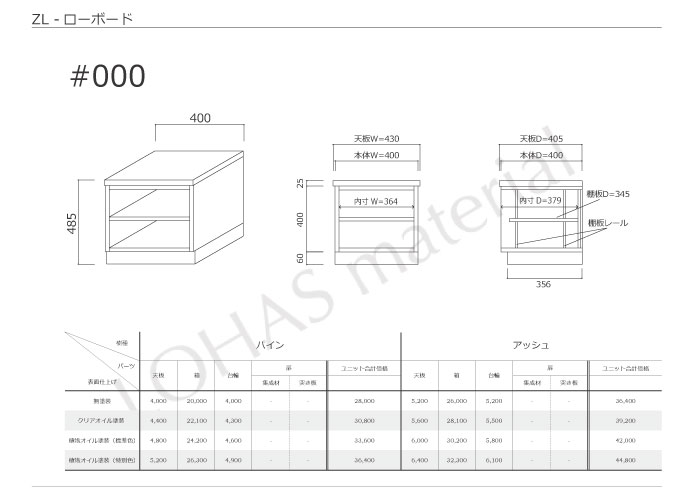 ・ローボード 9種・カウンターキャビネット 13種