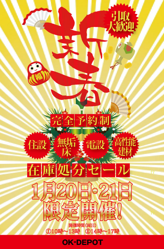 - 2020/1/17・18 工務店様応援!新春在庫一斉処分セール!!(業者限定)