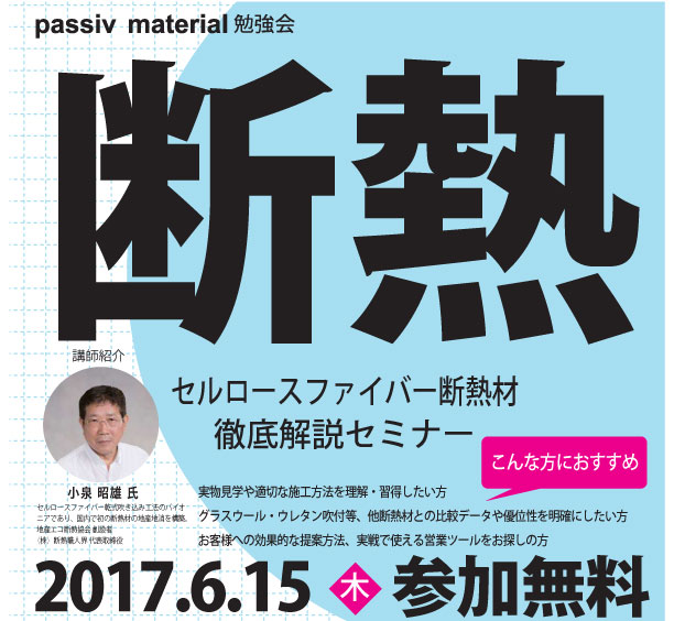 - 2017/06/15(木) passiv material勉強会 セルロースファイバー断熱材 徹底解説セミナーを開催いたします!