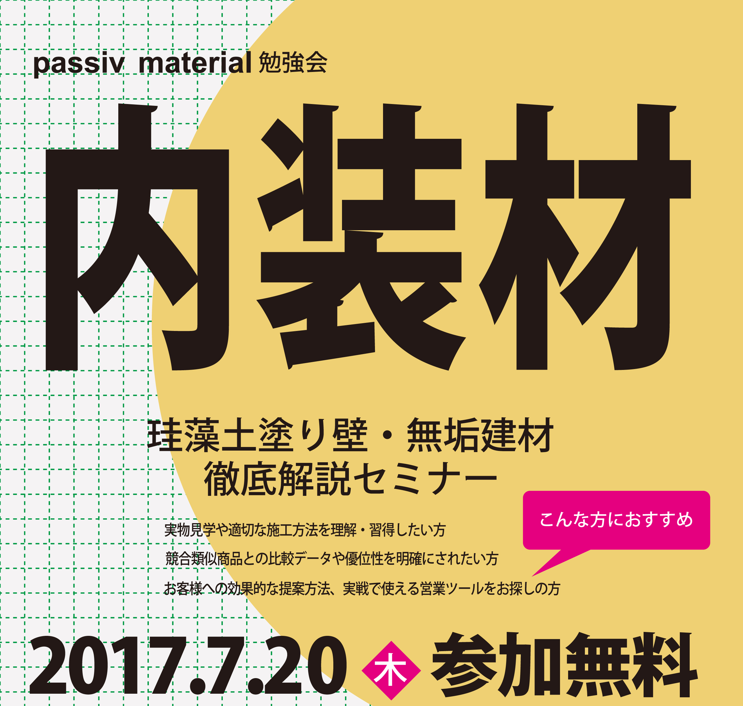 - 2017/07/20(木) passiv material勉強会 内装材 徹底解説セミナーを開催いたします!
