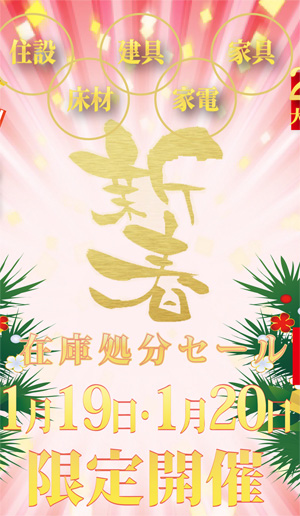 - 2019/1/18・19 工務店様応援!新春在庫一斉処分セール!!(業者限定)