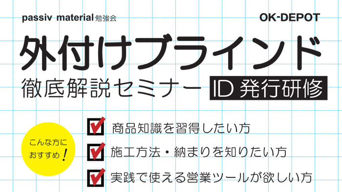 - 2018/04/19(木) passiv material勉強会 外付けブラインド 徹底解説セミナーを開催いたします!