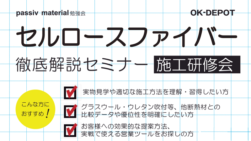 - 2018/05/17(木) passiv material勉強会 セルロースファイバー 徹底解説セミナー(施工研修会)を開催いたします!
