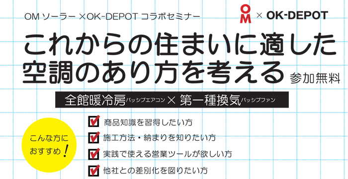- 2018/06/14・21(木) これからの住まいに適した空調のあり方を考える OMソーラー×OK-DEPOTコラボセミナーを開催いたします!