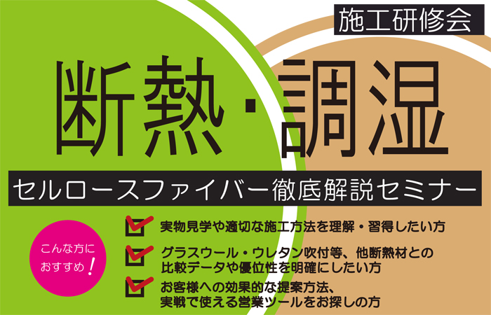 - 2019/05/23(木) 断熱・調湿 セルロースファイバー徹底解説セミナー