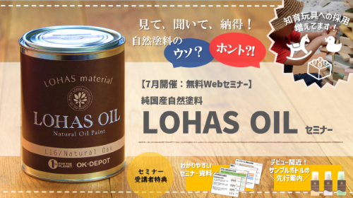 - 【7月開催・無料WEBセミナー】見て聞いて納得!自然塗料のウソ?ホント!?純国産自然塗料LOHAS OILセミナー