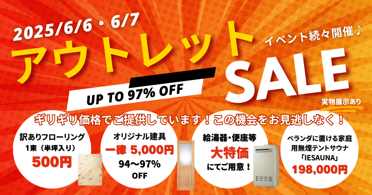 - 2025/6/6・7 工務店様応援!アウトレットセール!!(業者限定)